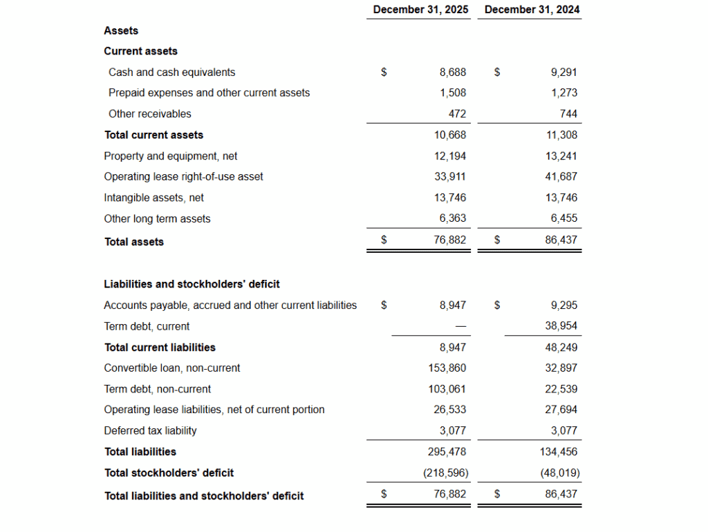 - Cash and Equivalents (including restricted cash) stood at $14.1 million as of December 31, 2025, compared to $14.8 million at year-end 2024