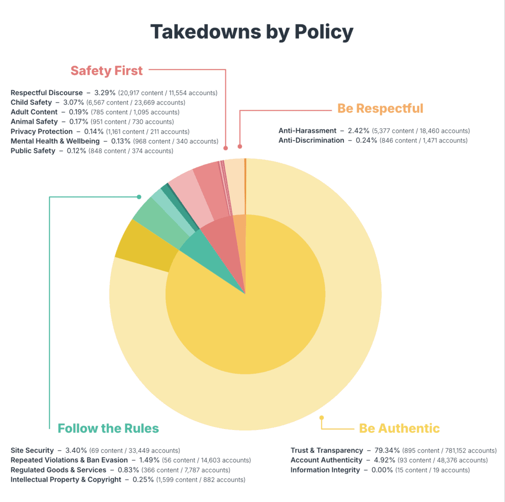 - Schema changes also played a role: prior “anti-social behavior” reports were reclassified under harassment, while spam shifted to misleading.