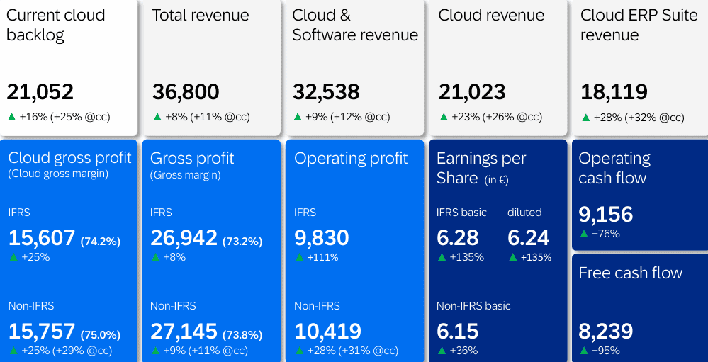 - Current Cloud Backlog stood at €21.05 billion, up 16% YoY and 25% at constant currencies.