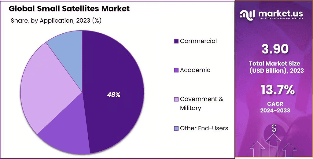 - In 2023, the Commercial segment took a commanding lead in the Small Satellites Market, securing a significant market share of over 48%.