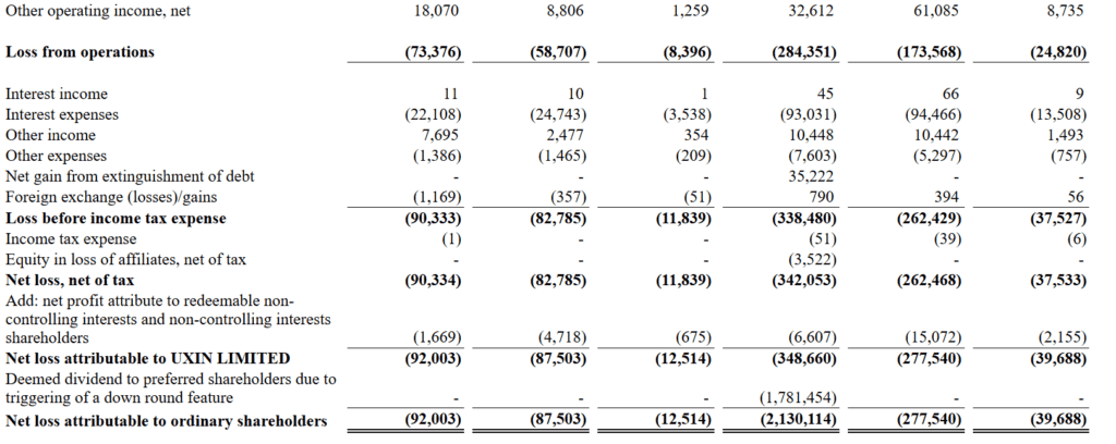 - Uxin recorded a full year 2025 net loss of about RMB 262.5-277.5 million, an improvement versus a loss of about RMB 342-349 million in 2024.